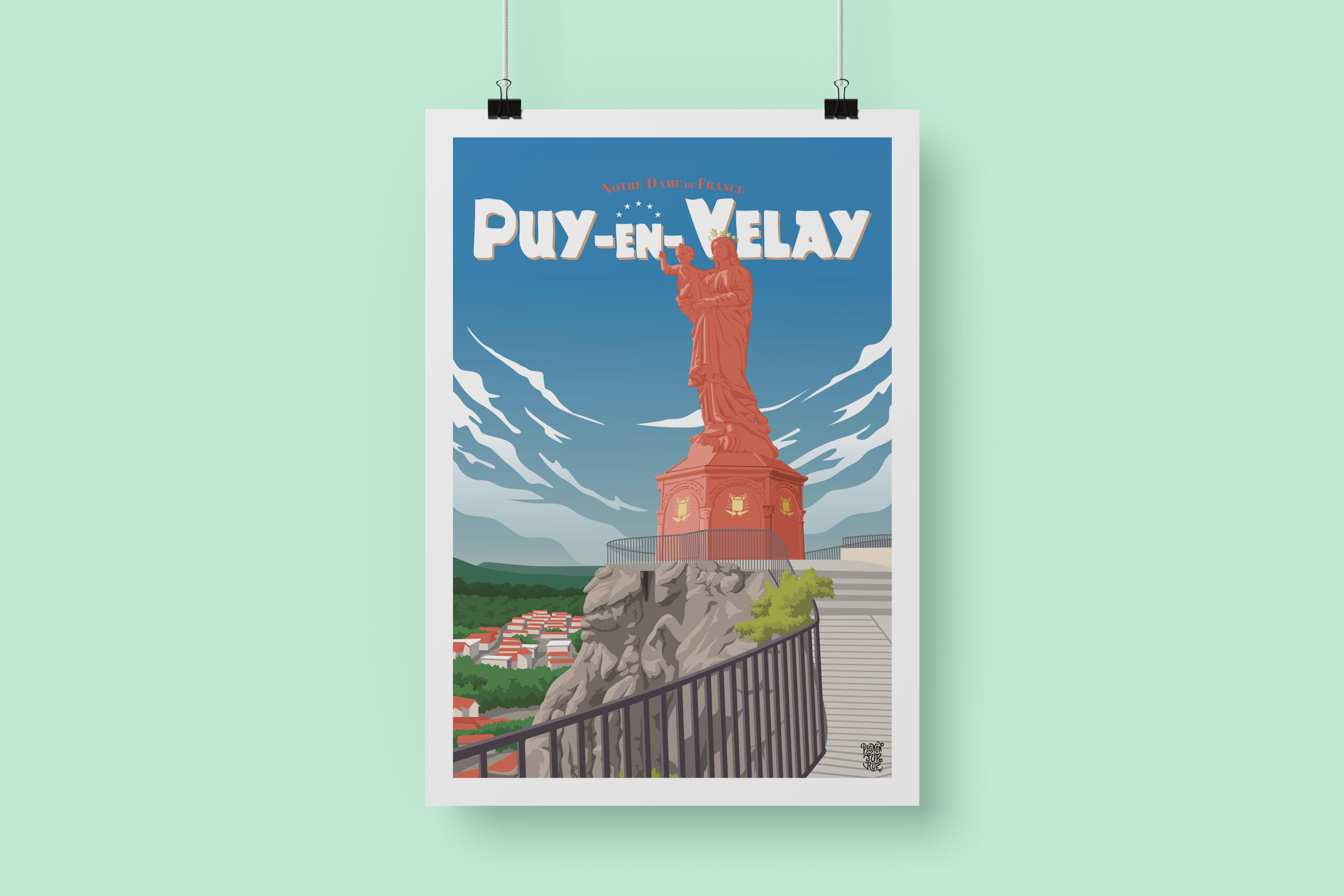 ⛪ Admirez la majesté de Notre-Dame de France au Puy-en-Velay avec ce poster captivant. Cette imposante statue, perchée sur un piton volcanique, surplombe la ville et offre une vue imprenable sur les paysages environnants. Le visuel capture l’élégance et la spiritualité de ce monument emblématique, apportant une touche de grandeur et de sérénité à votre espace, parfait pour ceux qui cherchent à intégrer histoire et inspiration sacrée dans leur décor 🌄
