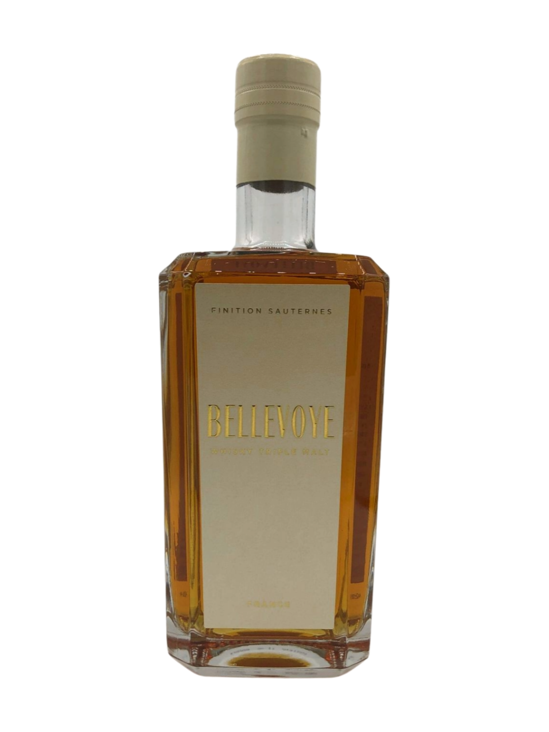 Bellevoye Blanc est un whisky français affiné en fûts de Sauternes. Il est issu d’un assemblage de malts provenant du Nord-Pas-de-Calais, d’Alsace et de Charente vieillis entre 3 et 8 ans. L’assemblage va ensuite vieillir durant un an en fûts de Sauternes, donnant au whisky des notes gourmandes et de la rondeur.