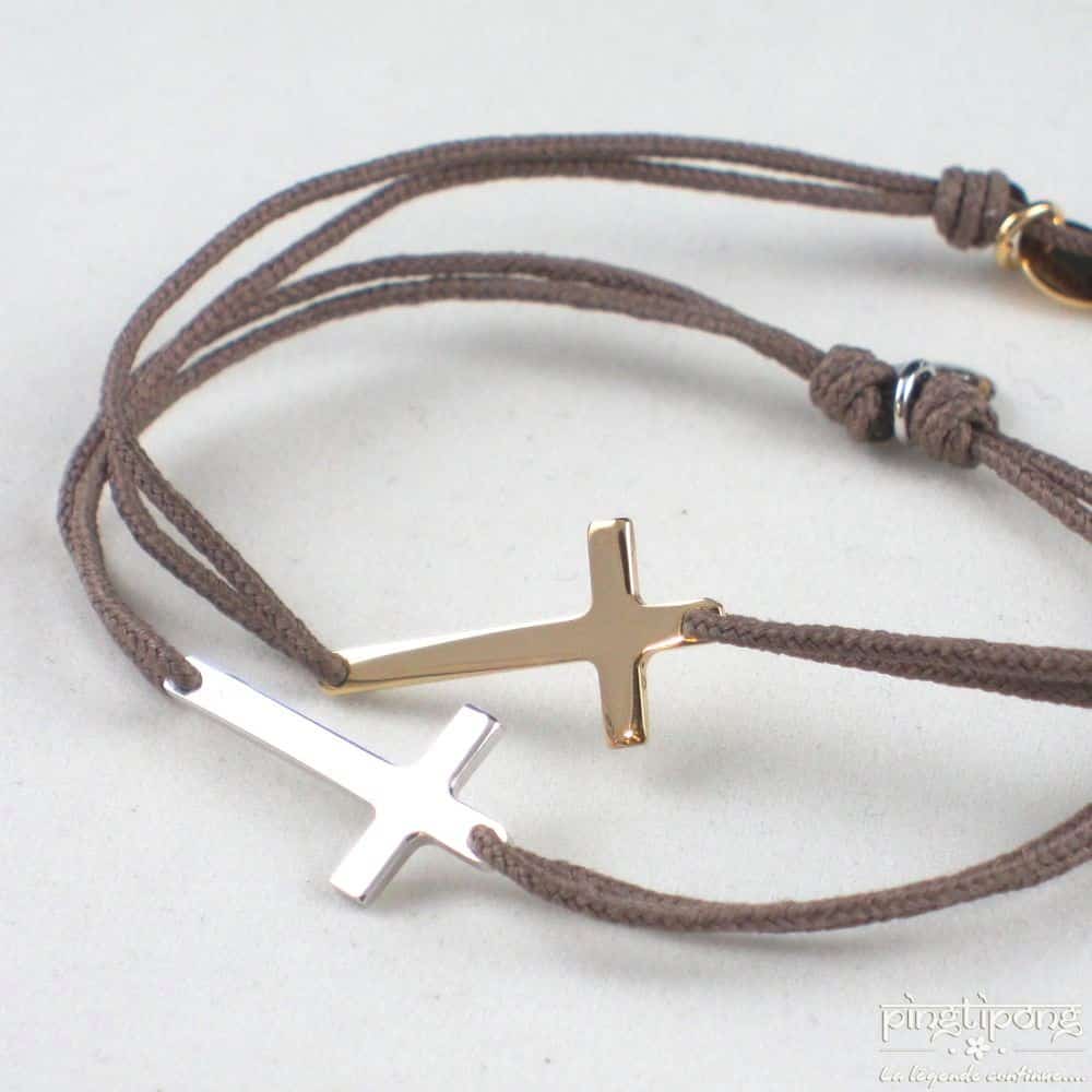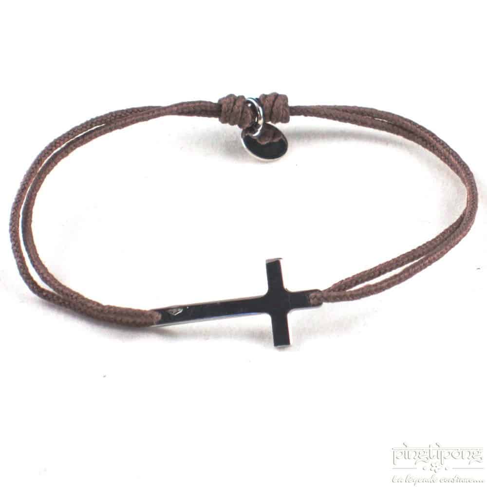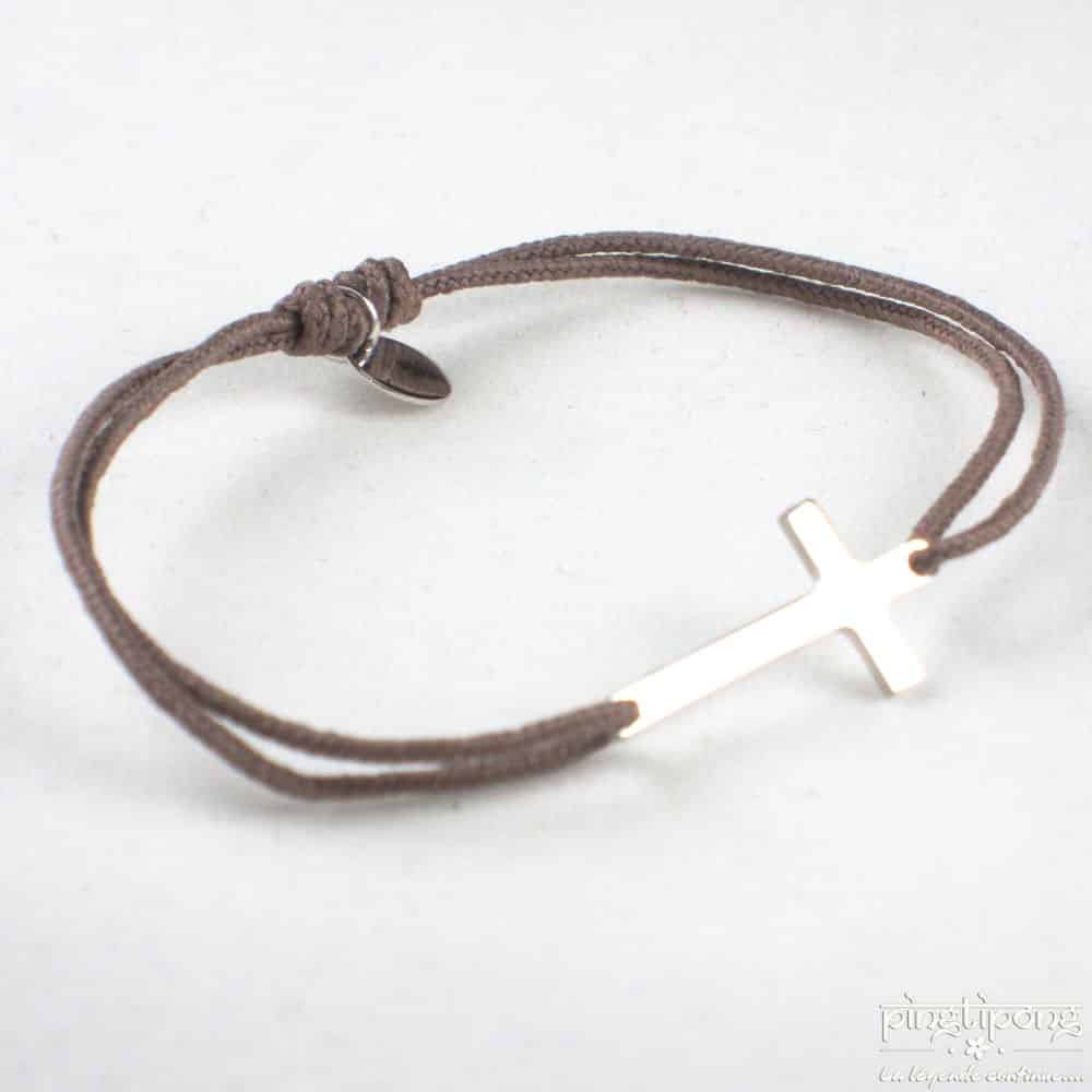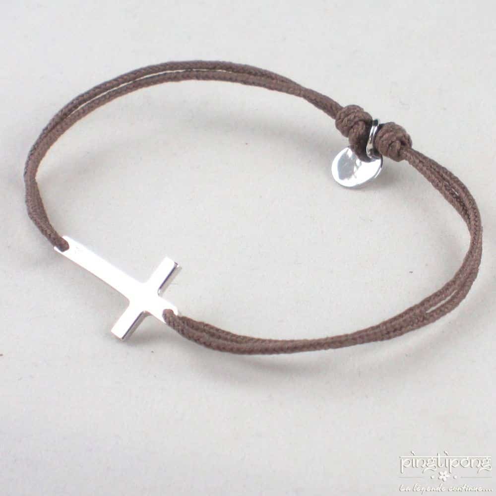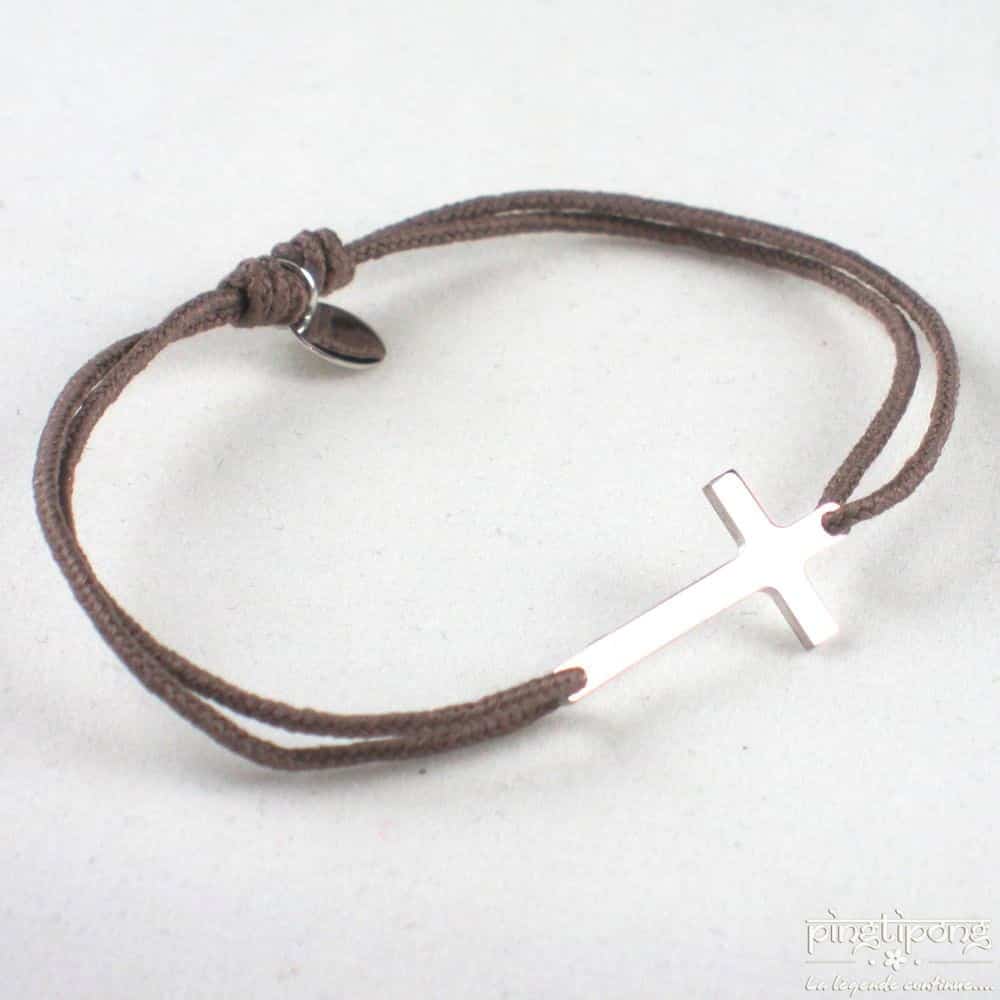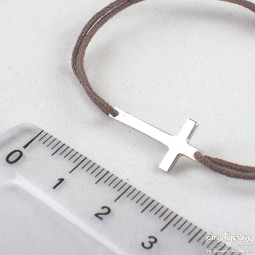 La croix mesure 2 cm, le bracelet est réglable de 16 cm à 28 cm.