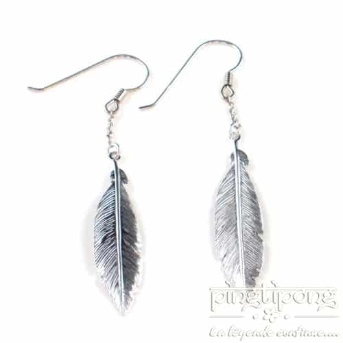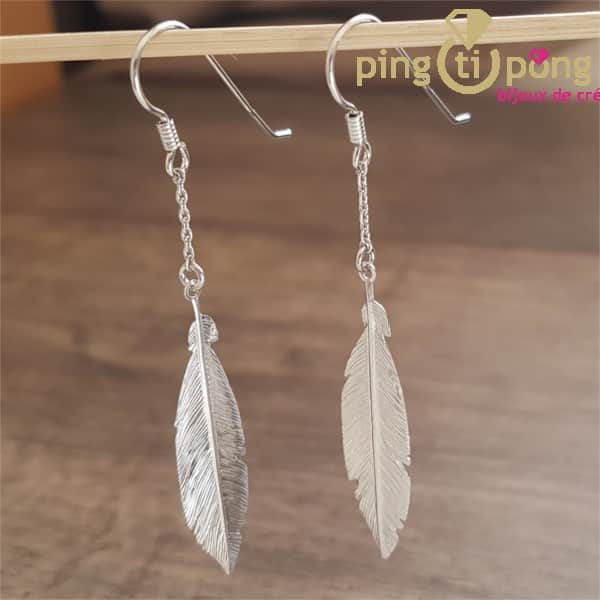 Bijoux en argent : boucle d’oreille en argent en forme de plume.