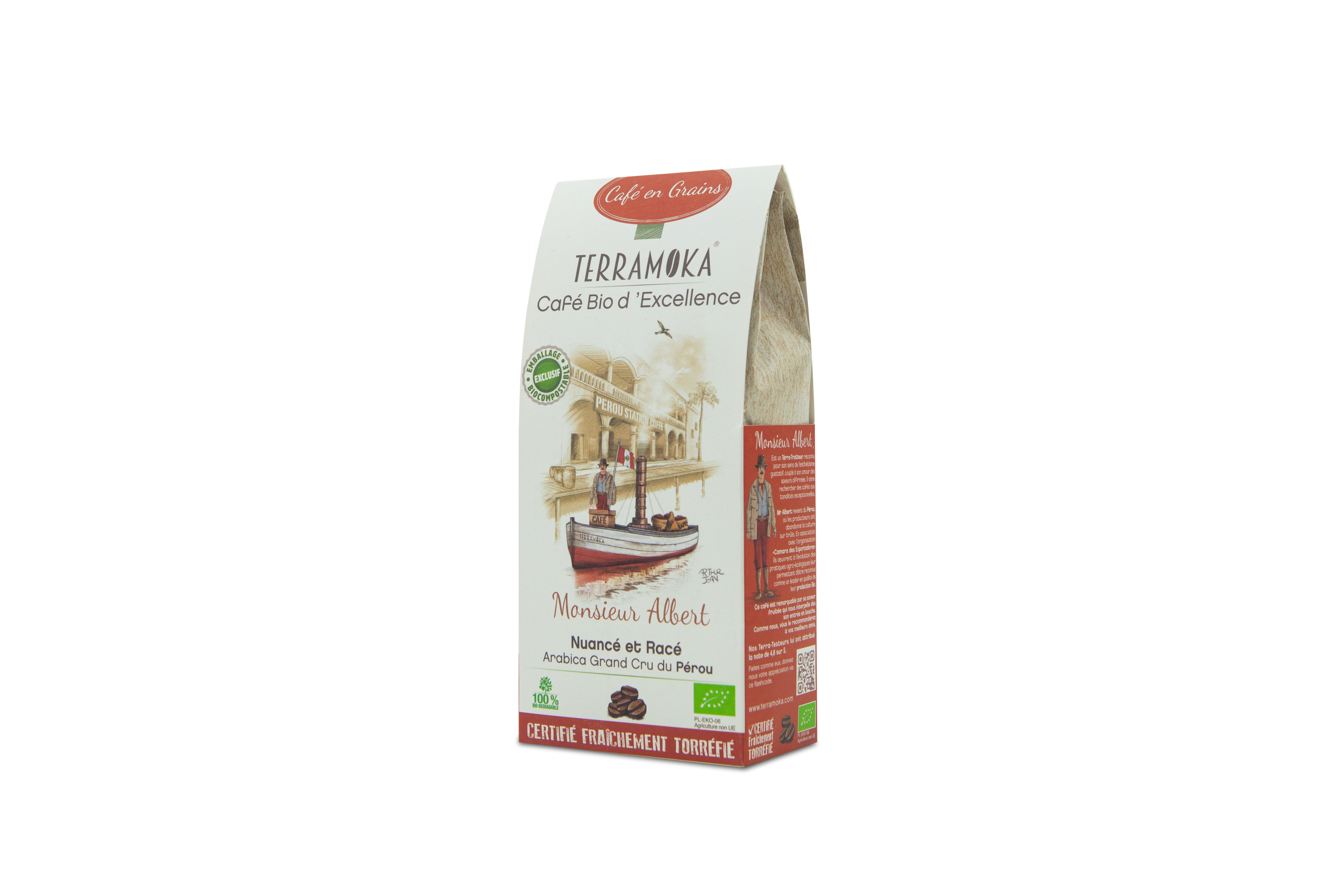 100% Arabica Café Bio en provenance du Pérou – Sachet 100% biodégradable et bio-compostable