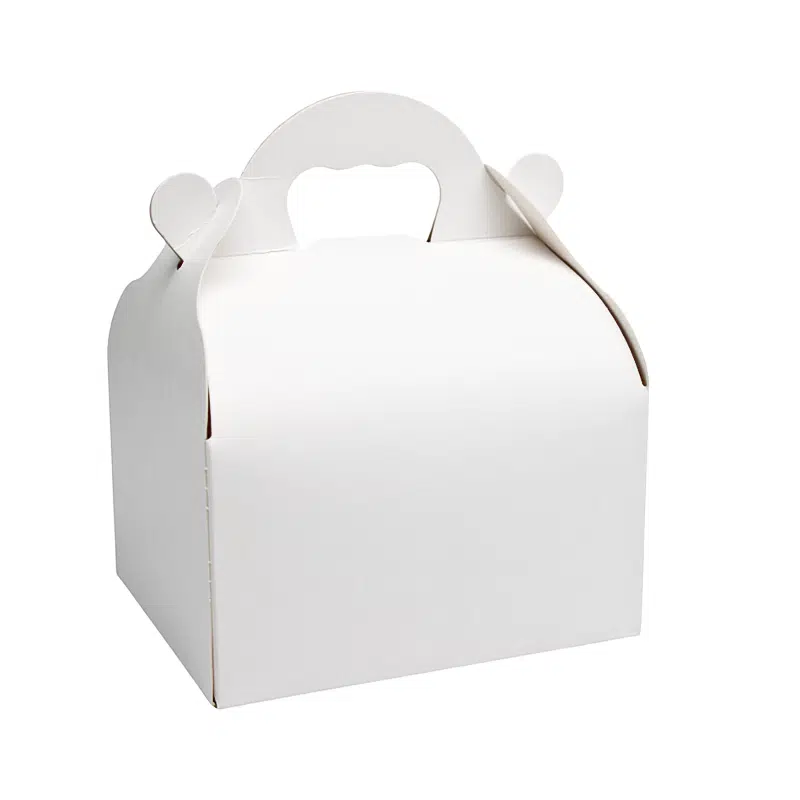 Description de notre caissette pâtissière blanche à poignée 20 x 18 x 7 cm par 50