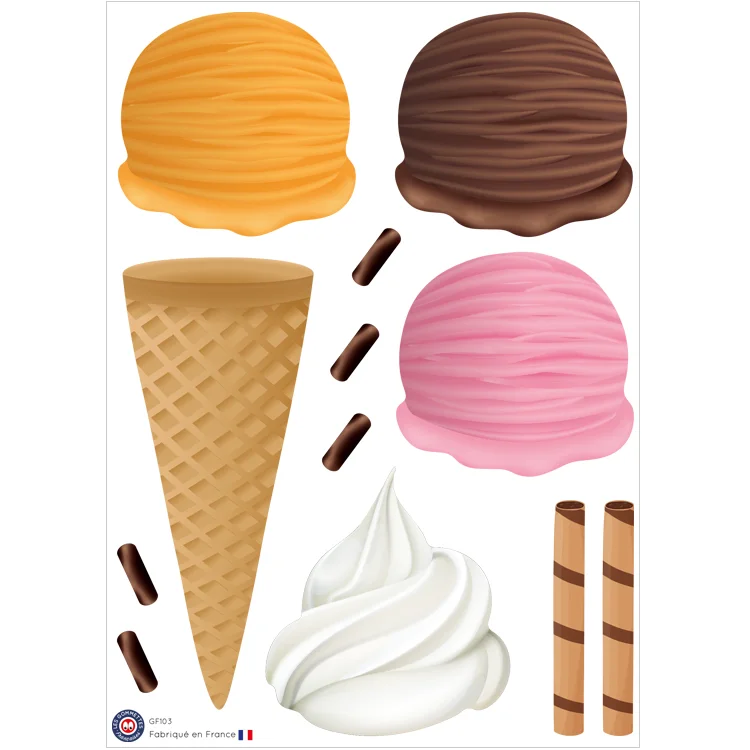 Ces autocollants Cornet de glace à assembler peuvent être collés sur toutes les surfaces planes, lisses et propres.