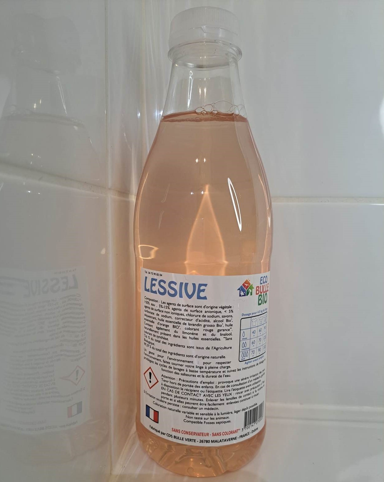 Lessive adaptée pour tous types de linge et toutes couleurs. Pour des lavages de 30 à 90°C. Elle est sans danger pour les fosses septiques.