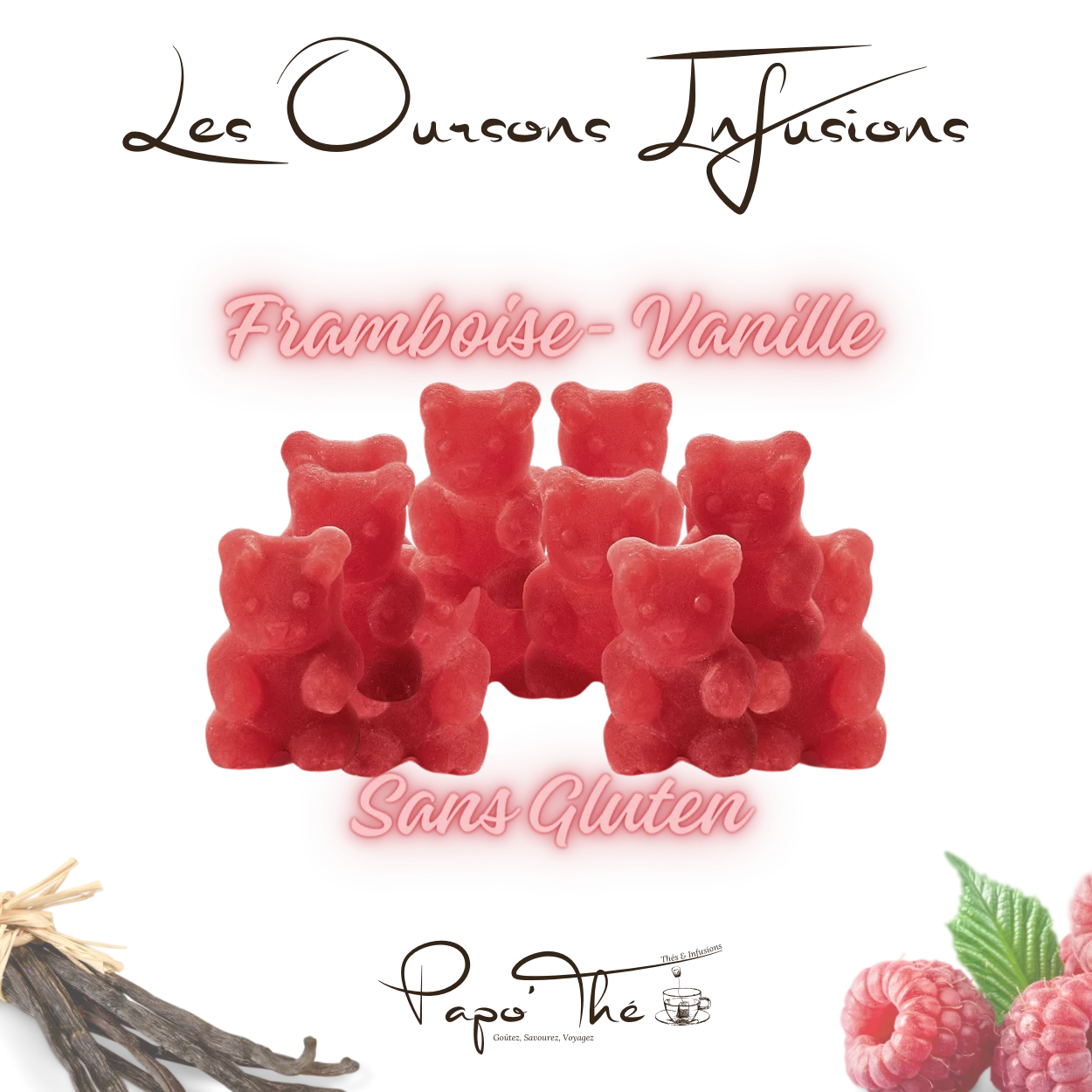 Savourez votre pause thé avec les délicieux Oursons Infusions Framboise – Vanille de Papo’Thé. Offrez-vous une expérience unique et gourmande avec nos oursons à infuser, parfaits pour toutes les occasions !