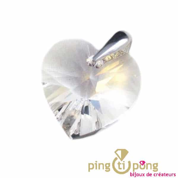 La pureté du cristal le plus classique pour ce très beau pendentif en forme de cœur en Swarovski et argent 925.