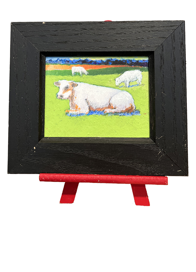 Petite vache 5 est une acrylique sur bois de l’artiste Frédéric Brandon.