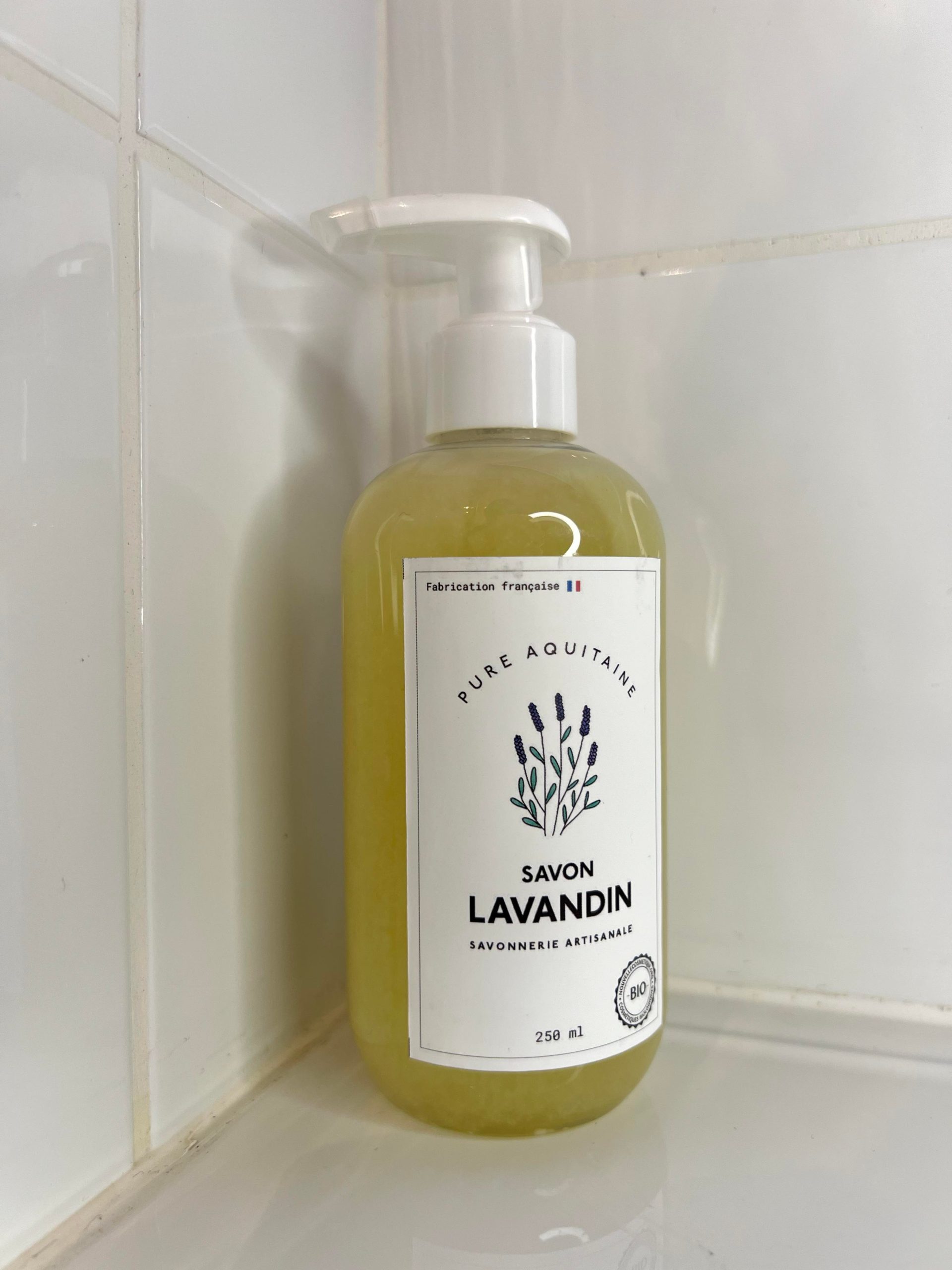 - Lavandin (Composants végétaux : Huile d’olive bio, beurre de coco bio, huile essentielle de lavandin bio, beurre de karité bio. Ingrédients : Aqua, Oléa europaea fruit oil , Cocos nucifera oil, Potassium Hydroxide, Butyrospermum Parkii Butter, Sodium Chloride, Lavandula hybrida oil, Linalool* (* Naturellement présent dans les huiles essentielles)