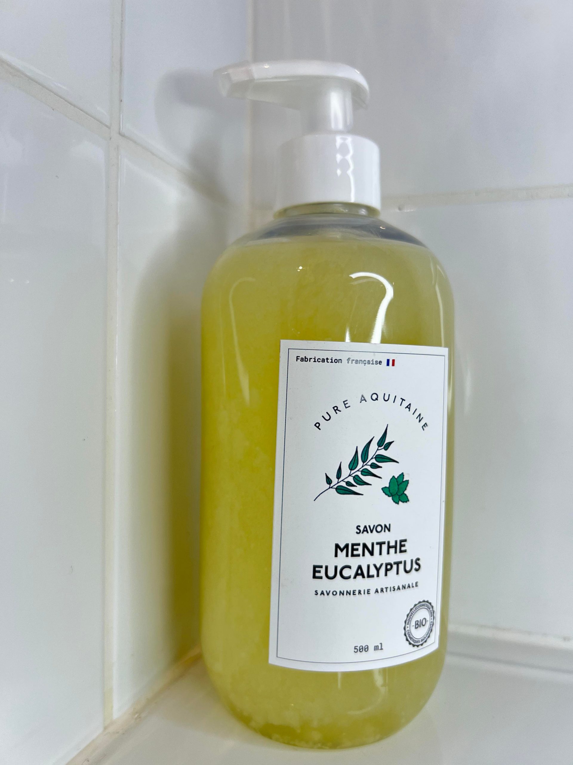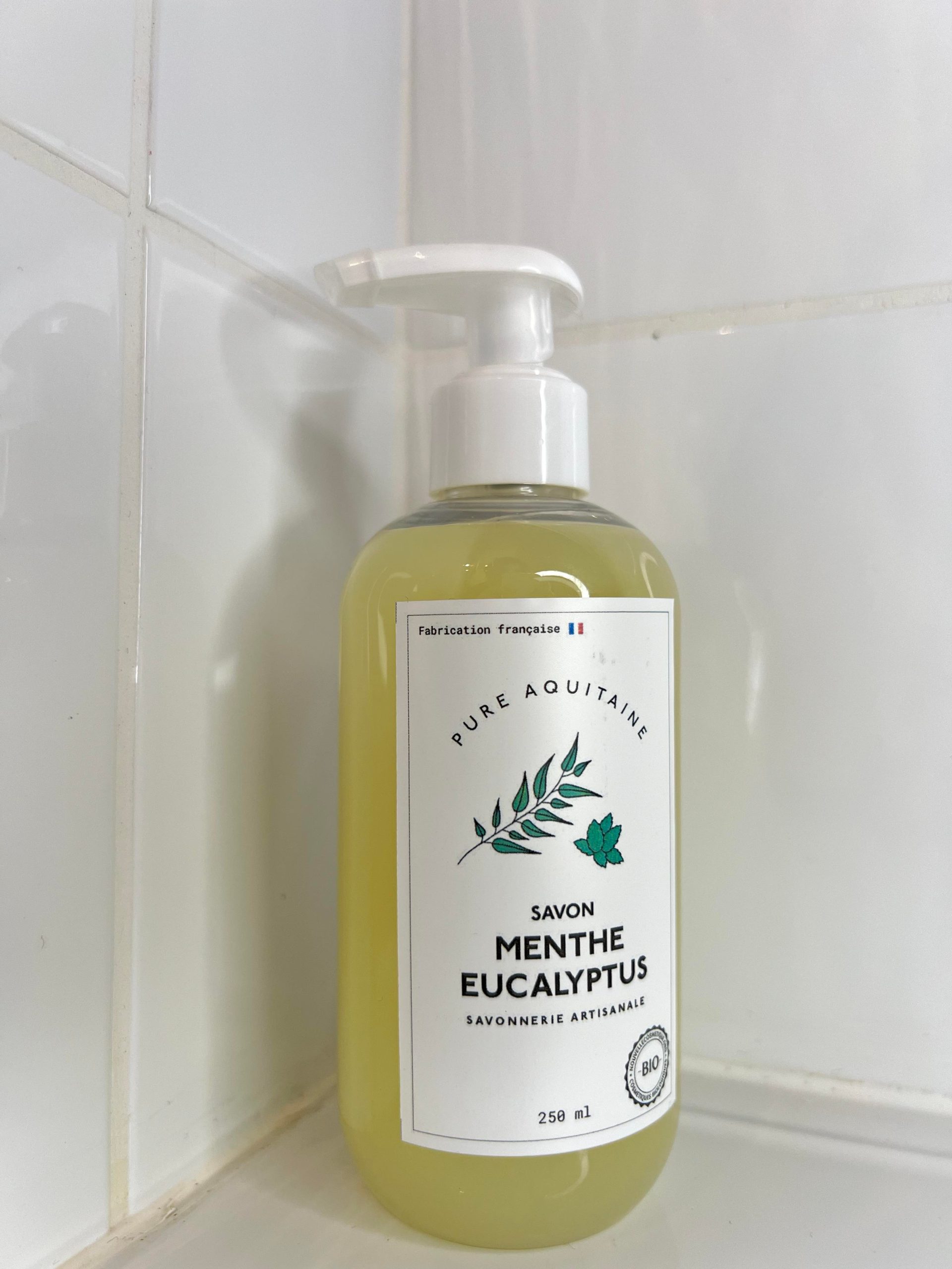 - Menthe Eucalyptus (Composants végétaux : Huile d’olive bio, beurre de coco bio, huiles essentielles de menthe et d’eucalyptus bio, beurre de karité bio. Ingrédients : Aqua, Oléa europaea fruit oil, Cocos nucifera oil, Potassium Hydroxide, Butyrospermum Parkii Butter, Sodium Chloride, Mentha arvensis herb oil, Eucalyptus globulus leaf oil, Limonene* (* Naturellement présent dans les huiles)