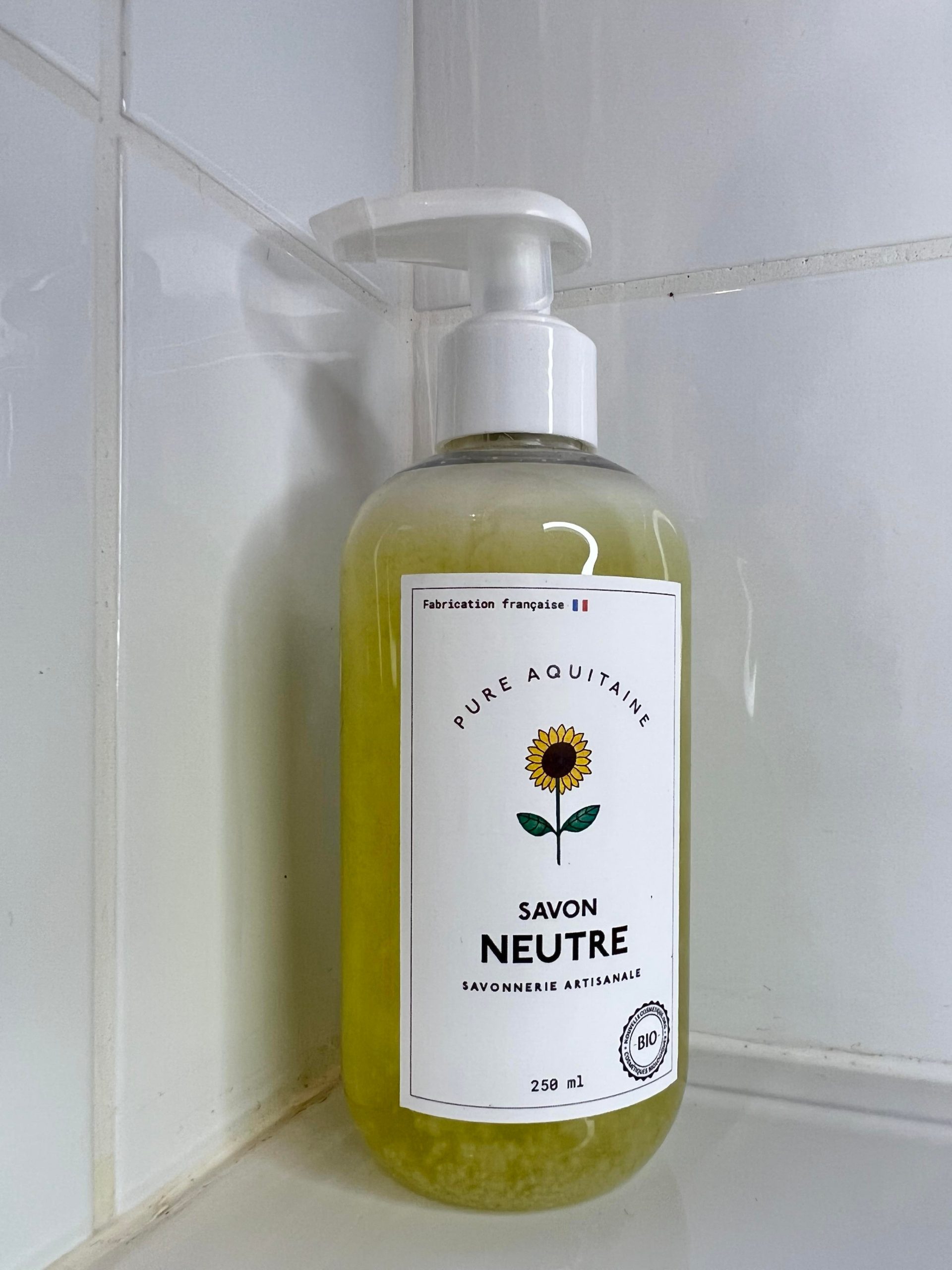 - Neutre (Composants végétaux : Huile d’olive bio, beurre de coco bio, beurre de karité bio. Ingrédients : Aqua, Oléa europaea fruit oil, Cocos nucifera oil, Potassium Hydroxide, Butyrospermum Parkii Butter, Sodium Chloride)