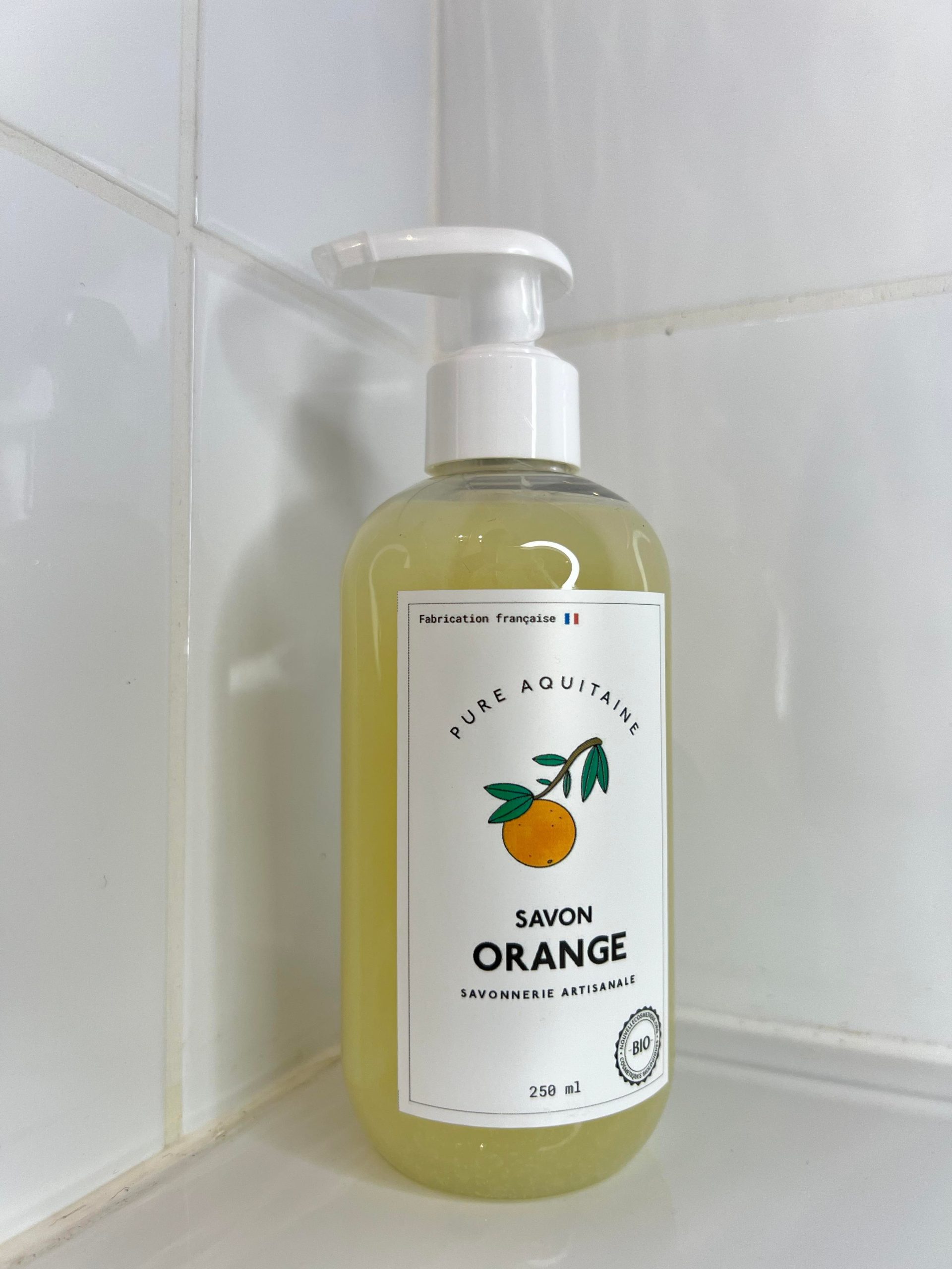 - Orange (Composants végétaux : Huile d’olive bio, beurre de coco bio, huile essentielle d’orange douce bio, beurre de karité bio. Ingrédients : Aqua, Oléa europaea fruit oil, Cocos nucifera oil, Potassium Hydroxide, Butyrospermum Parkii Butter, Sodium Chloride, Citrus Aurantium dulcis peel oil expressed, Limonene* (* Naturellement présent dans les huiles essentielles)