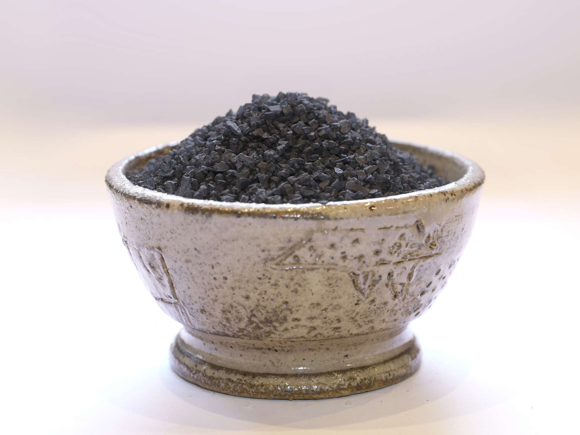 Mélange de sel marin, iodé et légèrement fumé, et de roche de lave noire, riche en charbons actifs. Sel de décoration.