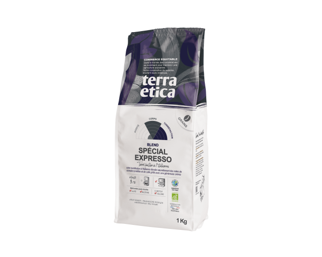 Café en grains torréfié arabica et robusta issu du commerce équitable* et de l’agriculture biologique