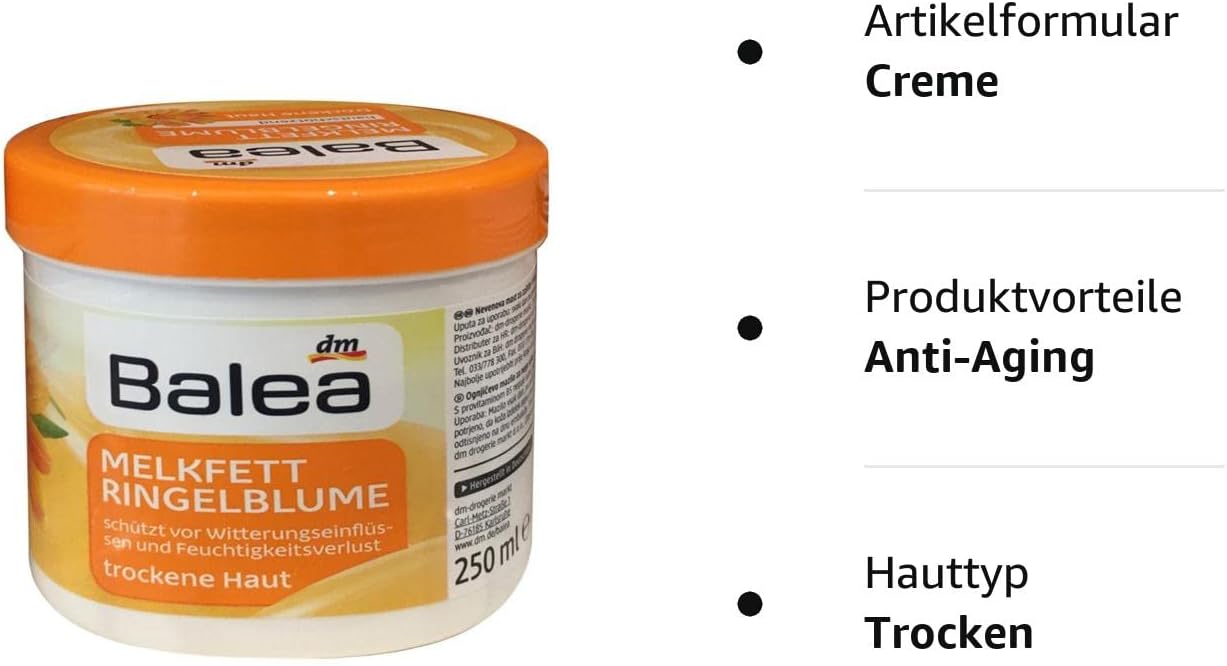 Pour une forte résistance cutanée: le calendula gras à traire Balea aux extraits précieux soigne les peaux sèches, stressées ou craquelées, réduit immédiatement l’évaporation rapide de l’humidité de la peau et la rend douce et souple. Le souci gras de traite est idéal pour le massage et comme protection contre le froid, au quotidien. Masser quotidiennement au besoin.