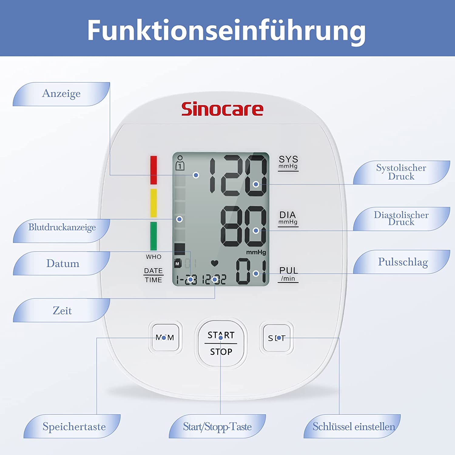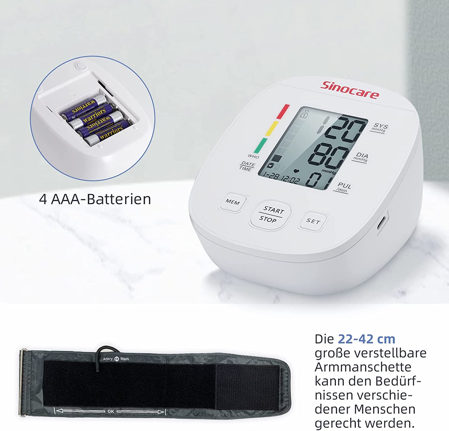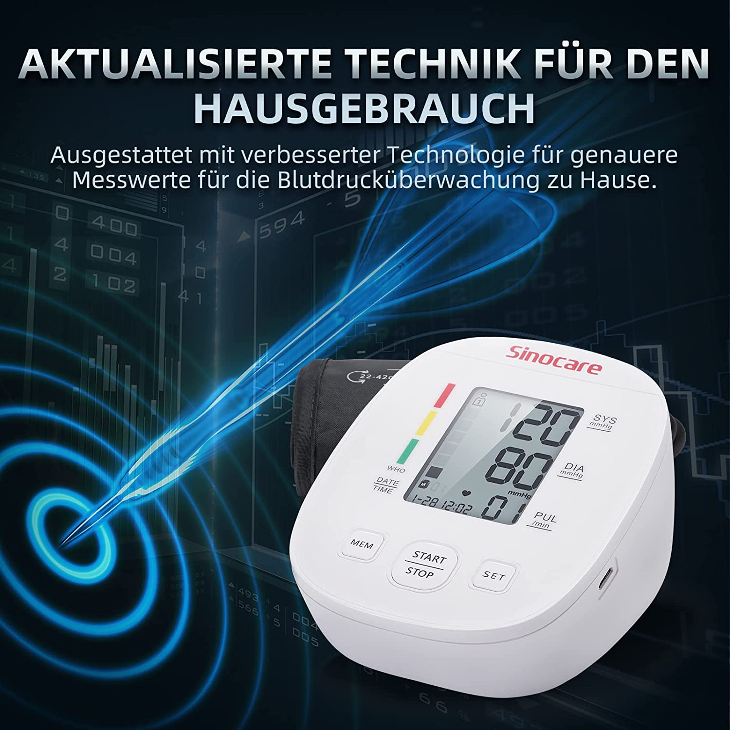 Sinocare Tensiomètre Bras Supérieur, Tensiomètre Automatique Numérique Bras, Tensiomètre à Usage Domestique, Grand Brassard Réglable 22-42 cm (13,70 x 10,40 x 11,20)